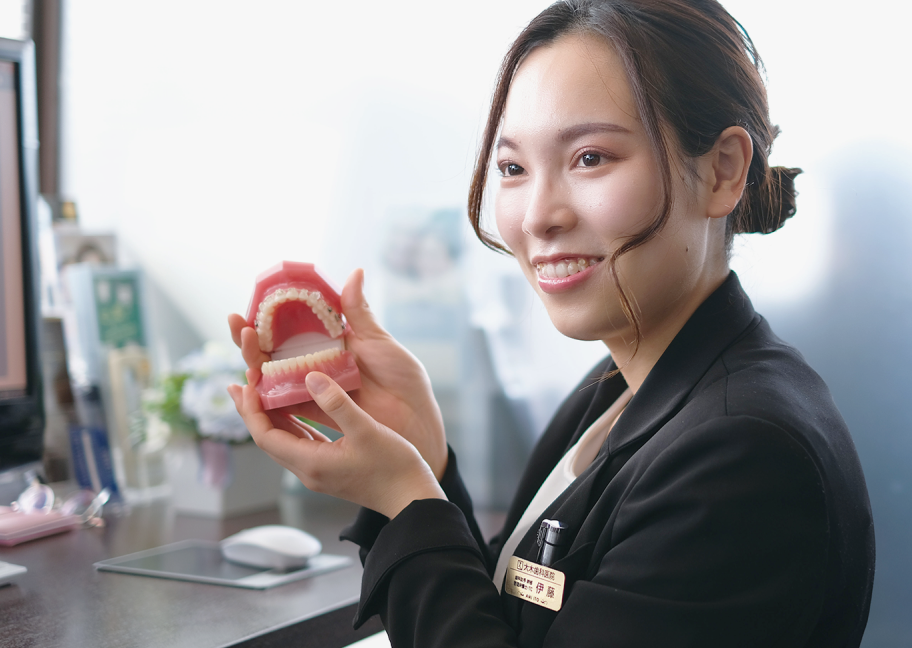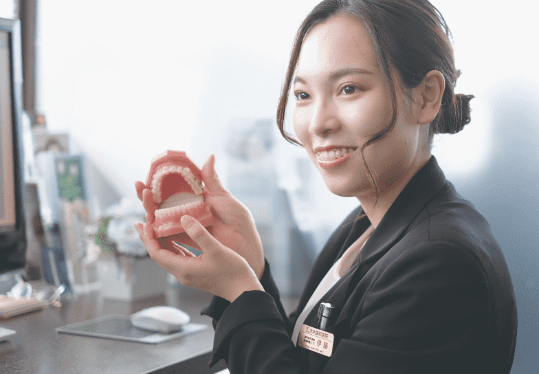 また、インプラント治療や審美治療との併用も可能です。お口の中を総合的に診て、機能性と見た目の両方に配慮した治療を行います。